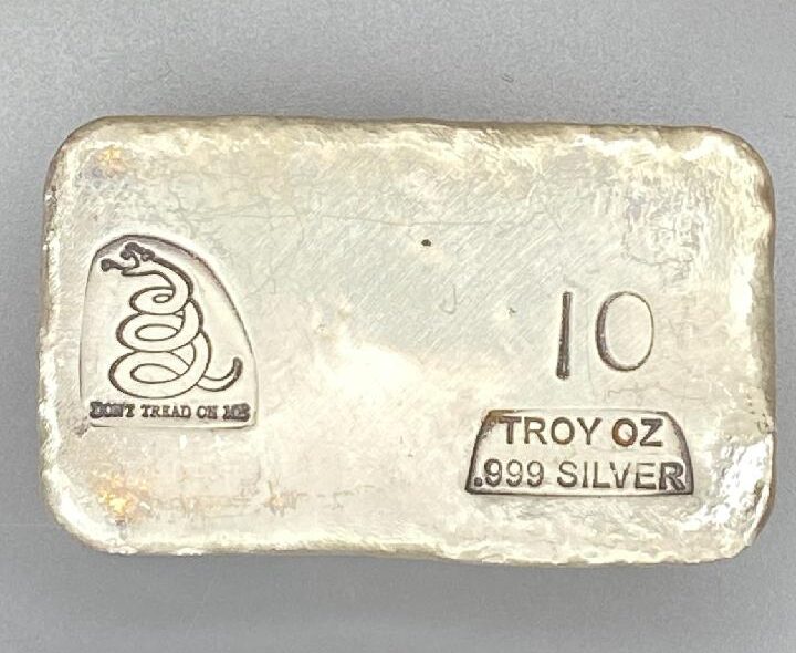 10 Troy Ounce .999 silver bar, Don’t Tread On Me stamp